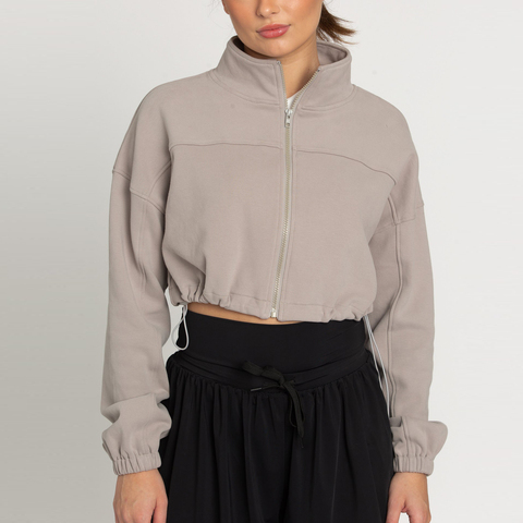 Sudadera con capucha y cremallera con logotipo personalizado, Sudadera con capucha recortada y patrón estampado, Sudadera con capucha pesada