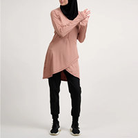 Logotipo personalizado negro musulmán mujeres transpirable poliéster Floral cuello alto suelta de manga larga talla grande modesto ropa deportiva tobillo