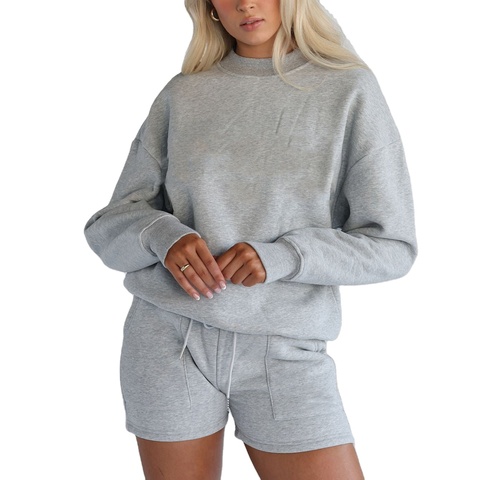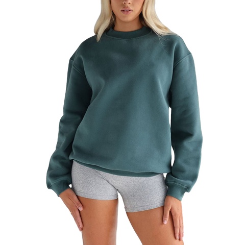 Venta al por mayor mujeres algodón cortavientos sólido cuello redondo diseño mujeres pulóver manga larga suave clásico polar mujeres sudaderas con capucha