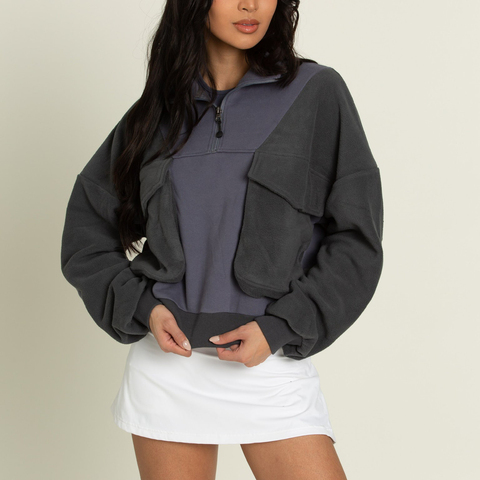Turn-Down Collar Cargo Pullover Sudadera con capucha personalizada Fabricante Streetwear Sudadera con capucha Pull Over Sudadera