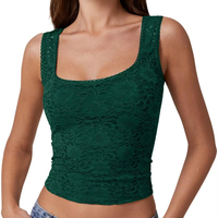 توب نسائي مخصص بتصميم عتيق منسوج وقابل للتنفس مع حواف دانتيل وياقة دائرية بدون أكمام، قميص قصير ضيق بطبقتين